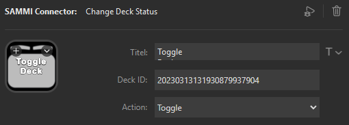 Control the status of your Decks in SAMMI: Turn On, Turn Off, or Toggle.